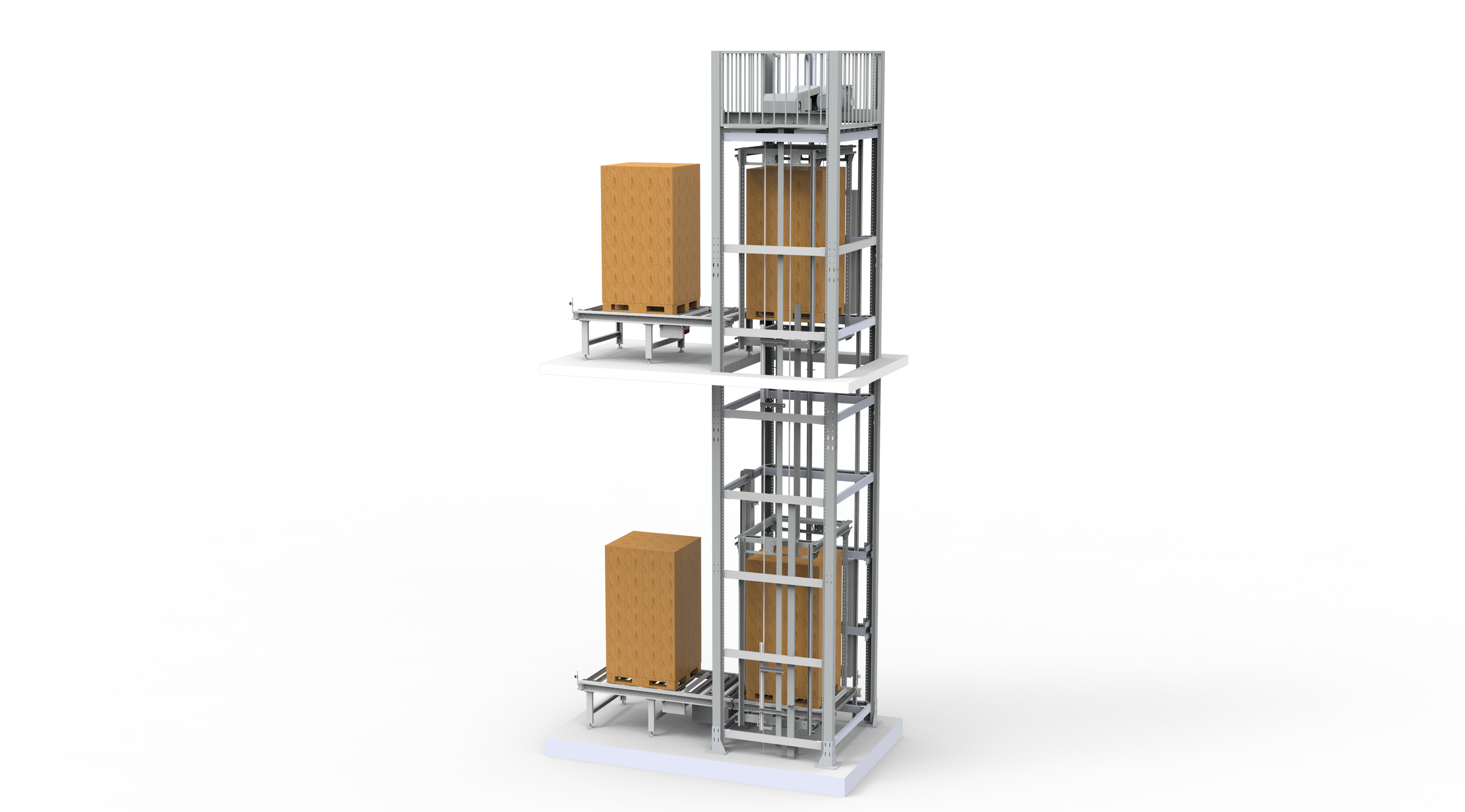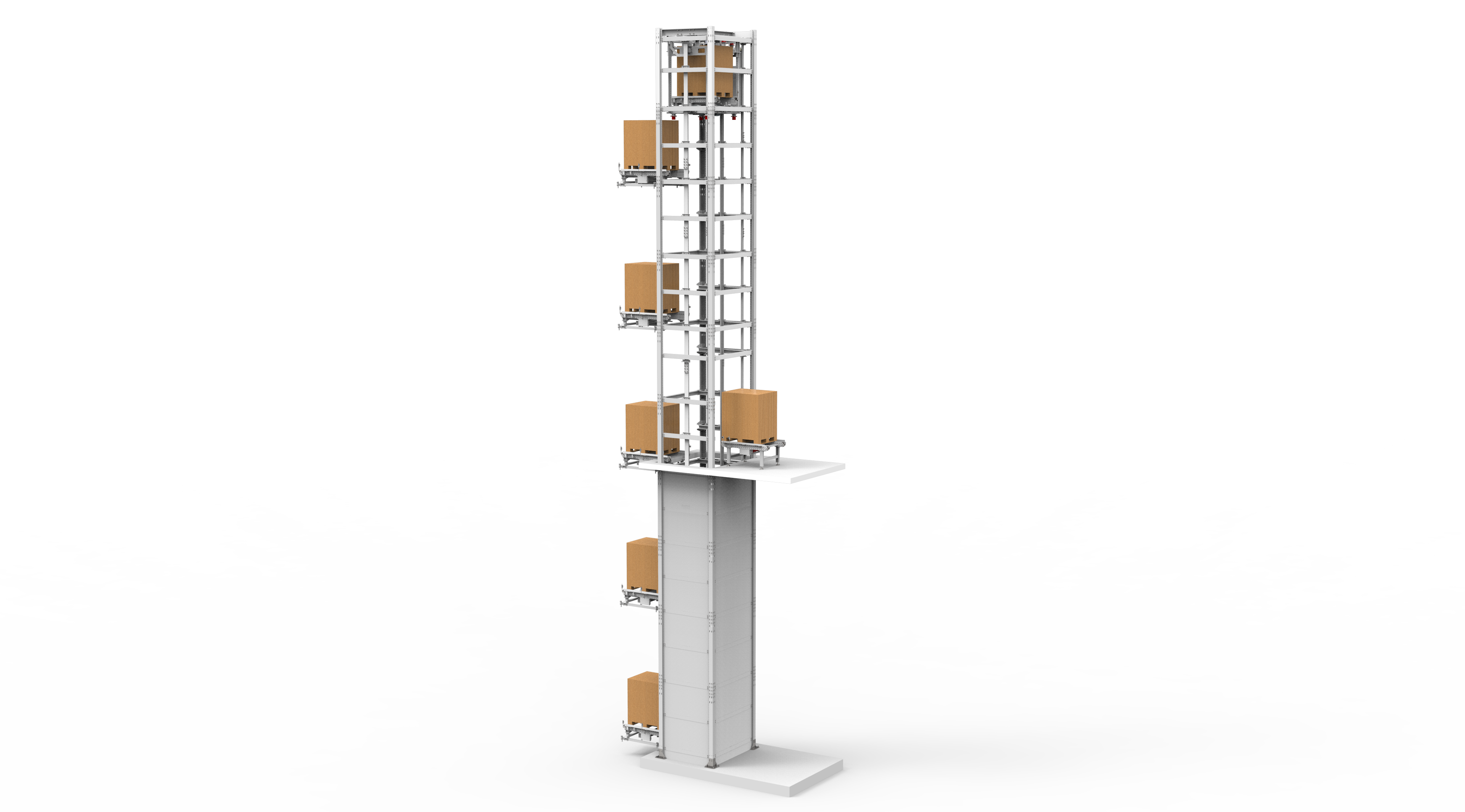 鸿安可提供定制化解决方案,满足多种物料的垂直搬运需求,包括:重型托盘、中小型料箱,以及特殊场景下的搬运。