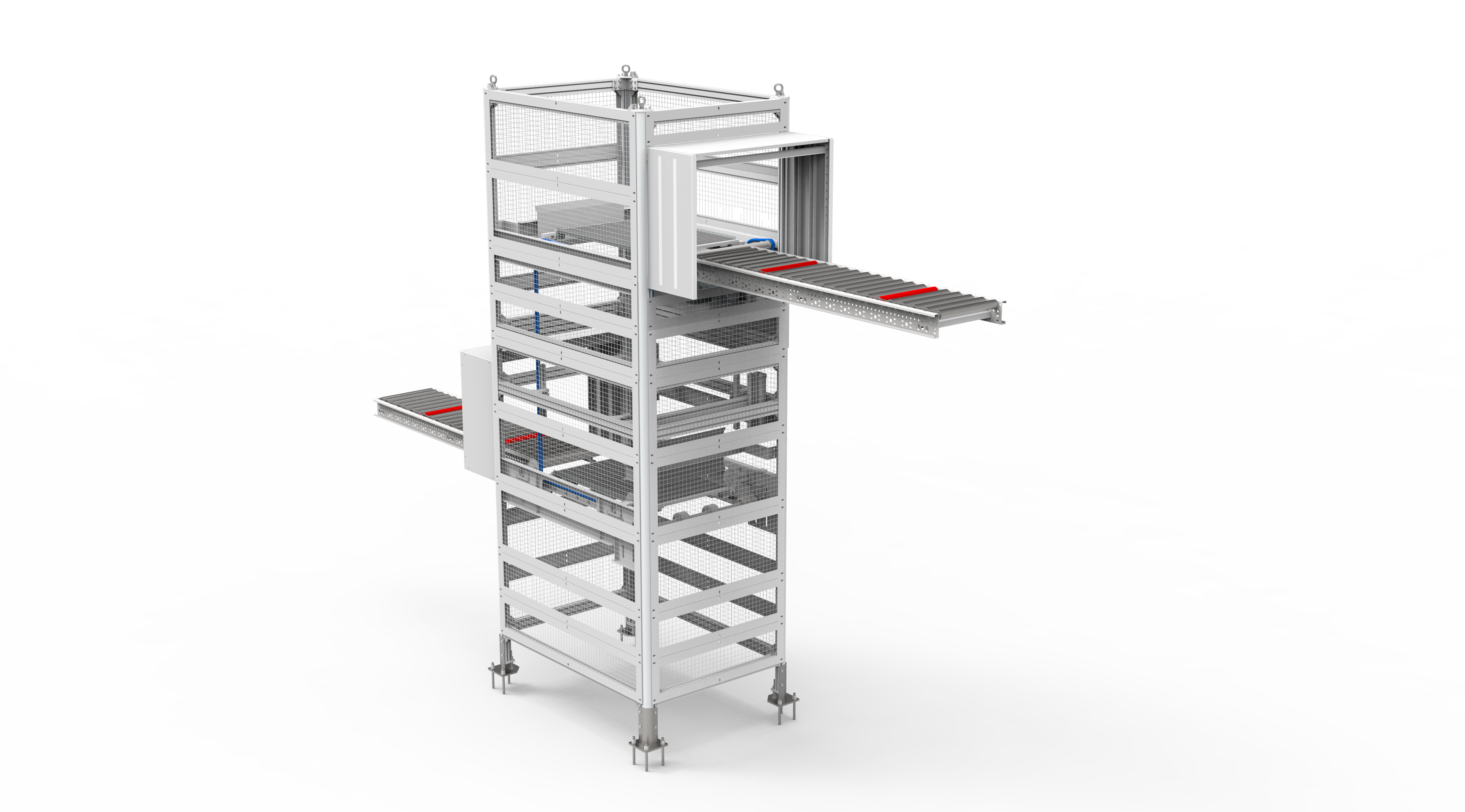 根据用户的定制化需求,开发了AGV接驳式、多功能循环式、密集存储式等一系列应用于特定场景的垂直输送机。